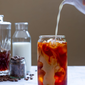 Mix ForBelly with a splash of milk first. Add espresso. Add remaining milk. Add ice. Stir well.